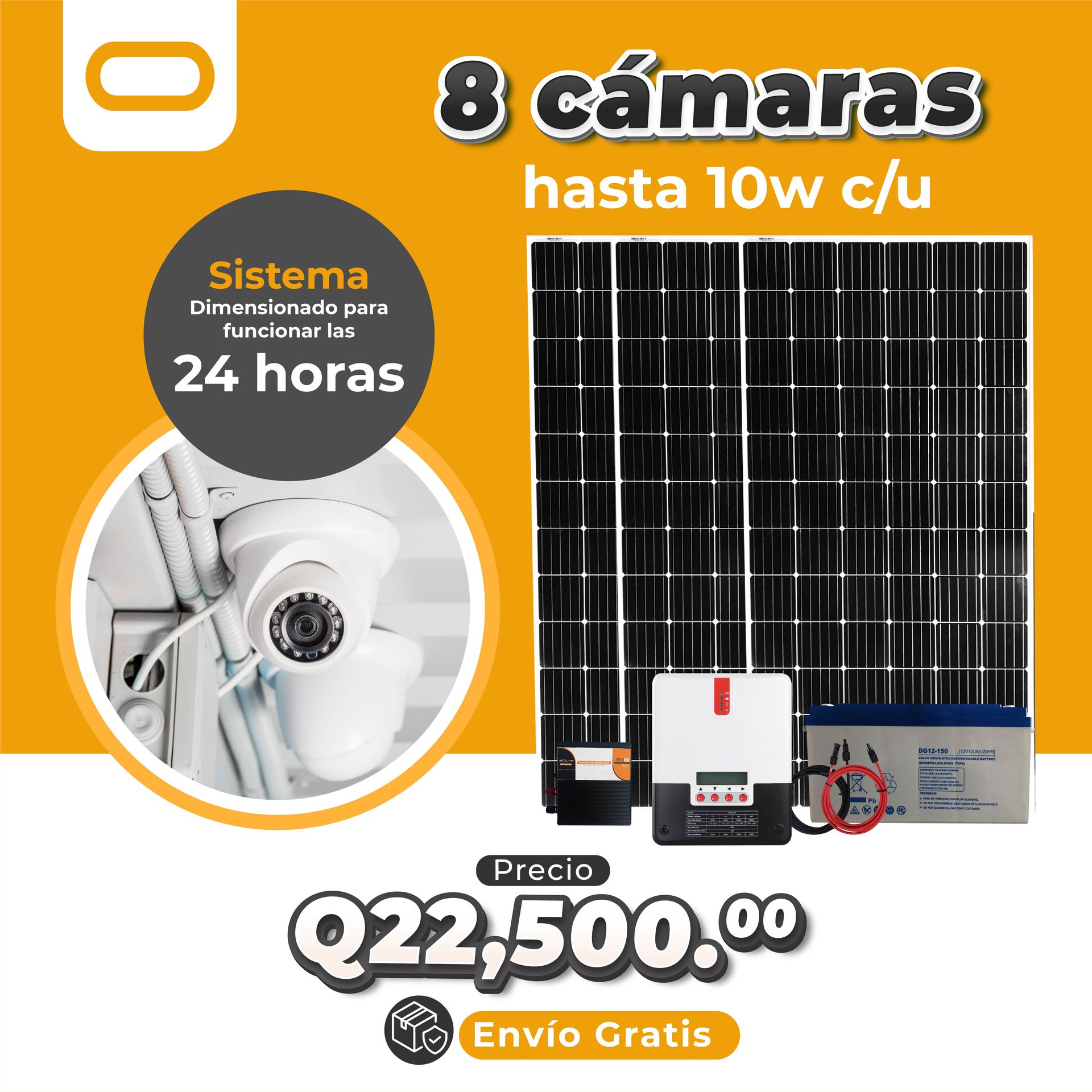 Con nuestro sistema de paneles solares con baterías, usted podrá tener la tranquilidad de que sus cámaras de vigilancia siempre estarán funcionando, incluso en lugares donde no hay acceso a la red eléctrica.