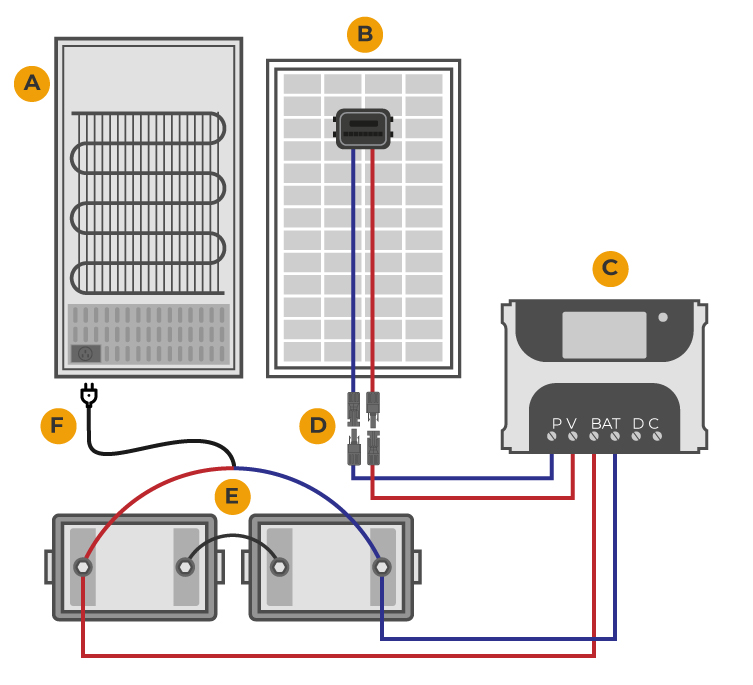F. Conexión de baterías a Refrigerador o Congelador Solar